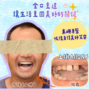 東嶼案例介紹 全口重建All-on-X:讓生活重回美好的關鍵 全口重建技術在現代牙科中的應用日趨成熟,而其中的All-on-X技術更是受到廣泛矚目,成為眾多全口缺牙患者的首選。本文將介紹All-on-X的獨特之處,並分享一位患者成功接受全口重建的經歷,展現這項技術如何改變生活、提升自信。 Read More